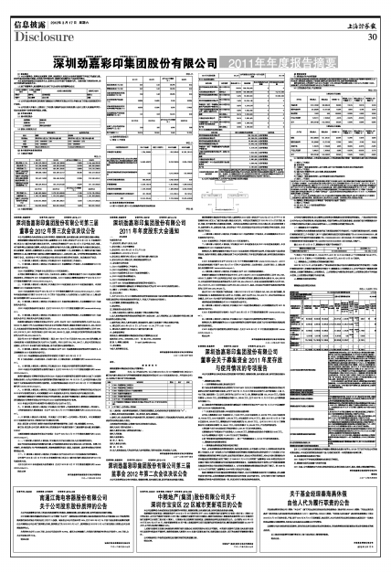 深圳劲嘉彩印集团股份有限公司2011年年度报告摘要