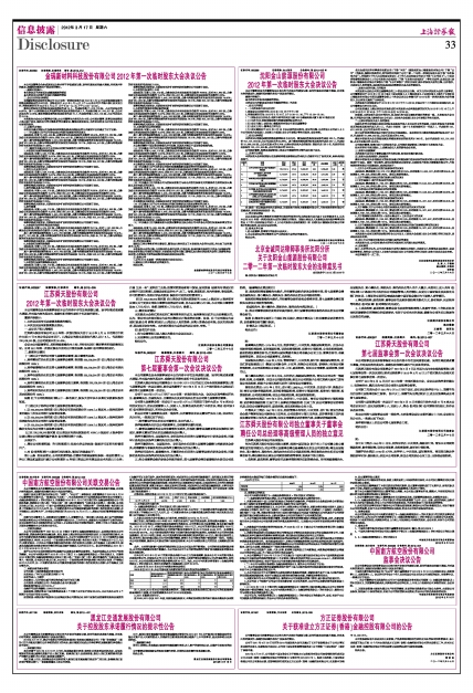 金瑞新材料科技股份有限公司2012年第一次临时股东大会决议公告