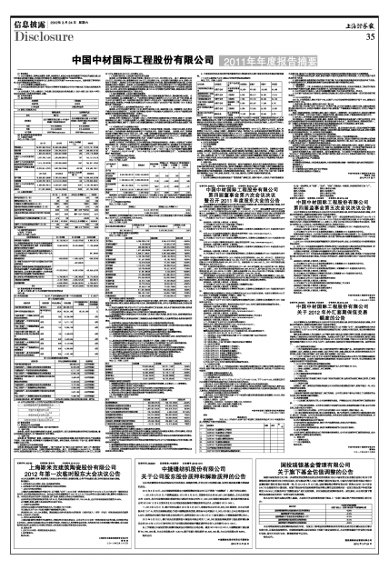中国中材国际工程股份有限公司2011年年度报告摘要