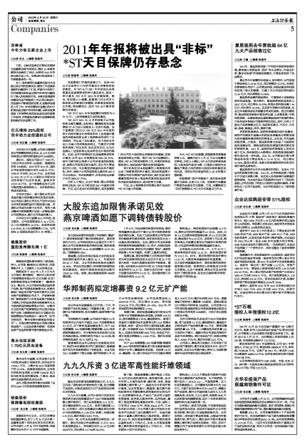 2011年年报将被出具“非标”