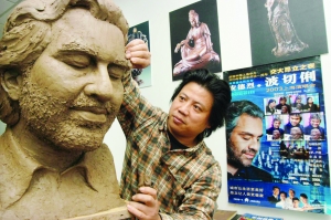 安德烈·波切利来上海举办演唱会时,我应邀为波切利塑造雕像,不过时间紧迫,只有3天。因为和波切利素未谋面,我搜集了很多关于他的资料和传记,也观察了他不同角度的照片,最终完成了作品。波切利雕像微微低头闭着眼睛,仿佛马上就要开口唱出美妙的歌曲。波切利本人‘见’到这尊雕像时也爱不释手。”