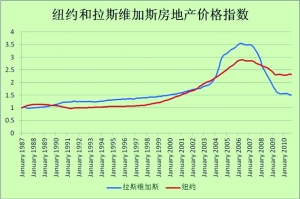 根据凯斯·希勒重复交易指数,纽约的房地产市场比峰值下跌了18%,而拉斯维加斯的房地产市场则比峰值下跌了58%。我们从左图可以清楚地看到,到2010年,纽约房地产市场的指数已经停止下跌,但拉斯维加斯的市场依然在不断下跌。这个事实告诉我们,相比之下,大都市的房地产价格波动更小,而处于发展中的中型城市的房地产市场具有更大风险。直觉告诉我们,这样的结果可能在艺术品市场同样适用。知名艺术家的作品价格波动更小,而希望之星的作品价格就会有较大起伏,涨得快,可能跌得也快。这样的结论是否正确还需要用更多严谨的案例研究去验证。(梅建平)