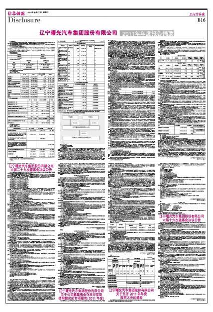 辽宁曙光汽车集团股份有限公司2011年年度报告摘要