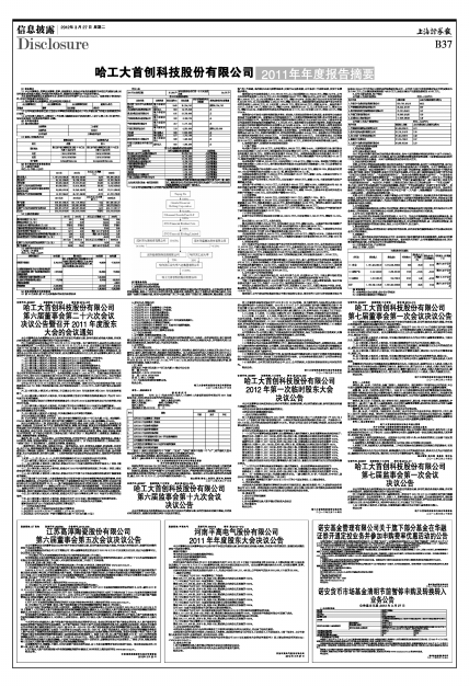 哈工大首创科技股份有限公司2011年年度报告摘要