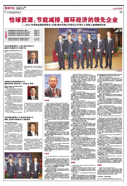 ——2012年怡球金属资源再生(中国)股份有限公司首次公开发行A股网上路演精彩回放