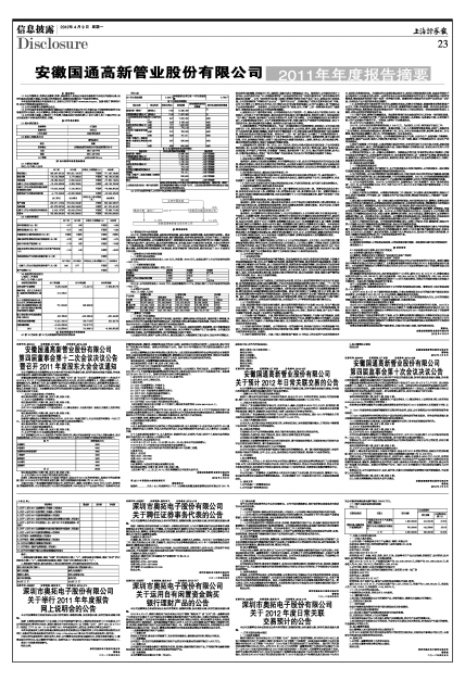 公司2011年度摘要请见《中国证券报》、《上海证券报》、《证券时报》报告全文请见上交所网站www.sse.com.cn。
