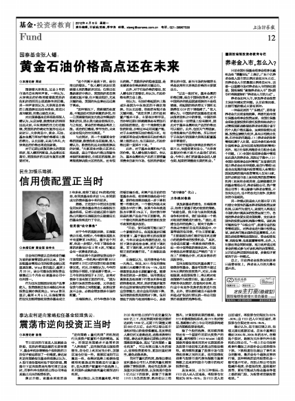 对此国泰基金总经理助理张人蟠认为,从总体看,欧债危机的消弭远远未到,中东局势的压力仍在继续,美国经济的确定性复苏也远未到时日,大宗商品中,黄金、石油、基本金属乃至农作物价格都有上涨的潜力。从长远看,未来几年内,大宗商品的价格还将迭创新高。