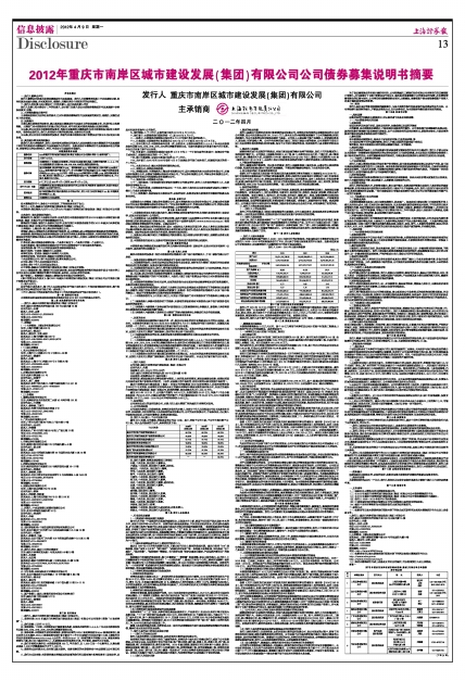 2012年重庆市南岸区城市建设发展(集团)有限公司公司债券募集说明书摘要