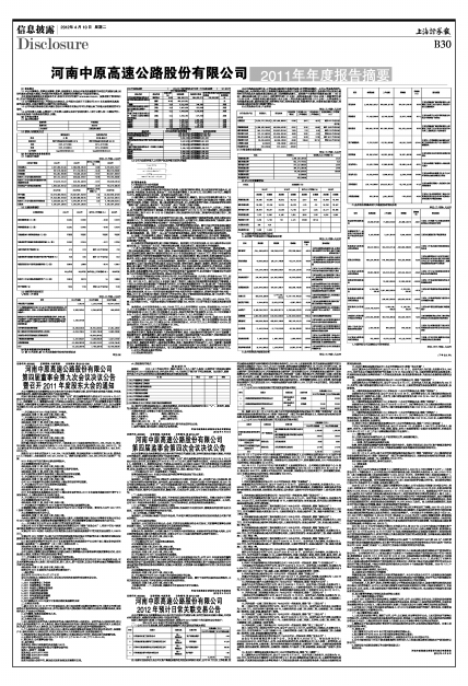 证券代码:600020 证券简称:中原高速 公告编号:临2012-006