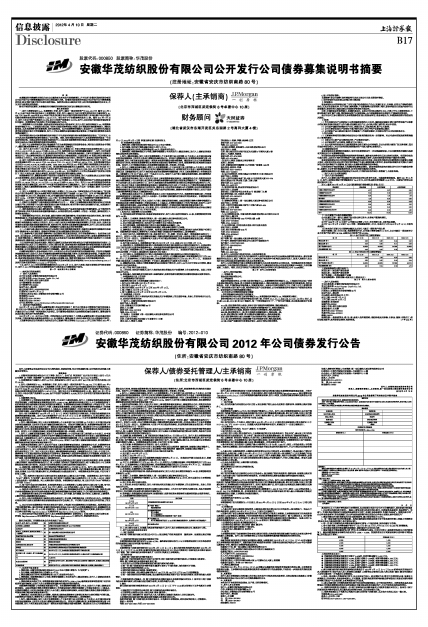 安徽华茂纺织股份有限公司2012年公司债券发行公告