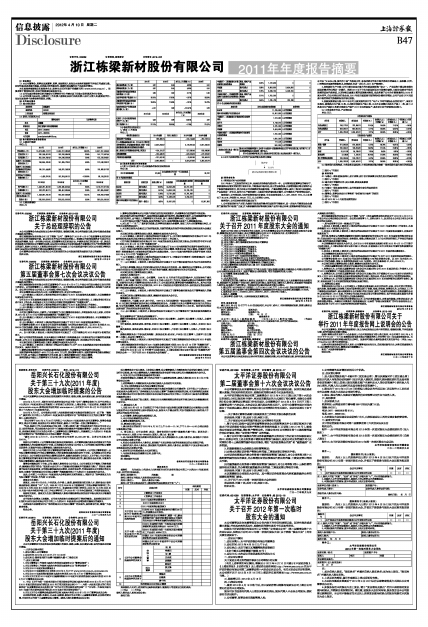 浙江栋梁新材股份有限公司2011年年度报告摘要