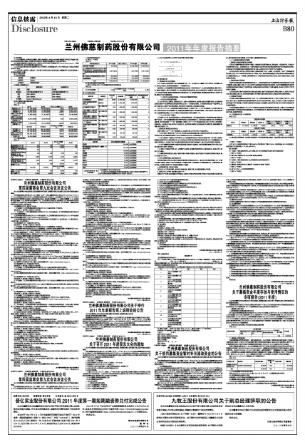 兰州佛慈制药股份有限公司2011年年度报告摘要