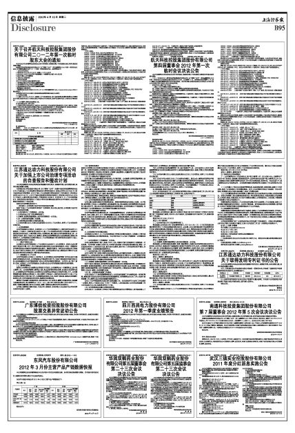 关于召开航天科技控股集团股份有限公司二○一二年第一次临时股东大会的通知