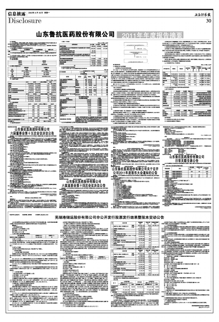 山东鲁抗医药股份有限公司2011年年度报告摘要