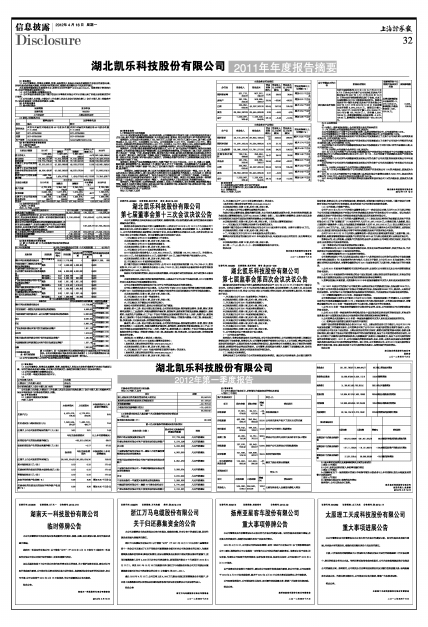 湖北凯乐科技股份有限公司2011年年度报告摘要