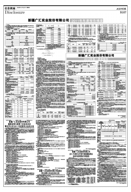新疆广汇实业股份有限公司监事会于2012年4月17日在本公司会议室召开了第五届第七次会议,应到监事5人,实到监事3人。符合《中华人民共和国公司法》、《中华人民共和国证券法》和本公司《章程》的有关规定。经讨论通过如下决议: