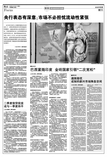 光大银行首席宏观分析师盛宏清认为,央行此番表态,意在向市场传达流动性会保持宽松、适度的水平,市场无需担心流动性问题。下一阶段,央行会通过各种数量型工具,引导货币适度增长,保证实体经济需要的流动性。