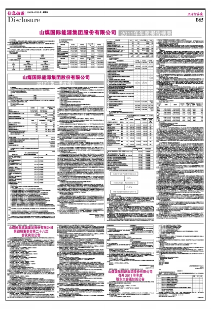 山煤国际能源集团股份有限公司(以下简称“公司”)第四届董事会第二十八次会议(以下简称“本次会议”)通知于2012年4月13日以送达、传真和邮件形式向公司全体董事发出,本次会议于2012年4月18日在太原市长风街115号世纪广场B座21层会议室以现场方式召开。本次会议应到董事11人,实到11人。会议的召集、召开及表决程序符合《中华人民共和国公司法》及《公司章程》的规定。本次会议由公司董事长杜建华先生主持,公司监事及部分高级管理人员列席了本次会议,经与会董事认真审议,形成董事会决议如下: