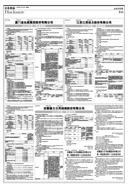安徽德力日用玻璃股份有限公司2012年第一季度报告