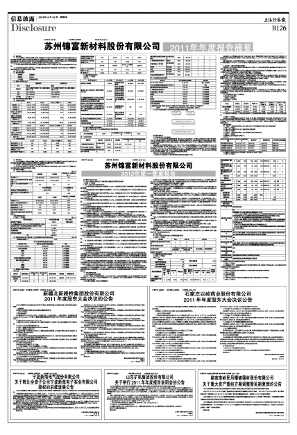 苏州锦富新材料股份有限公司2011年年度报告摘要