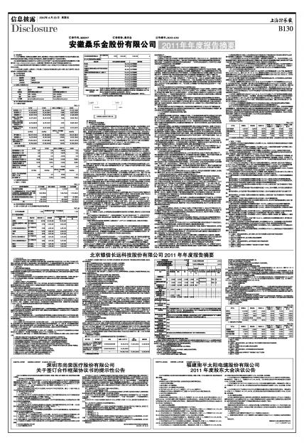 安徽桑乐金股份有限公司2011年年度报告摘要