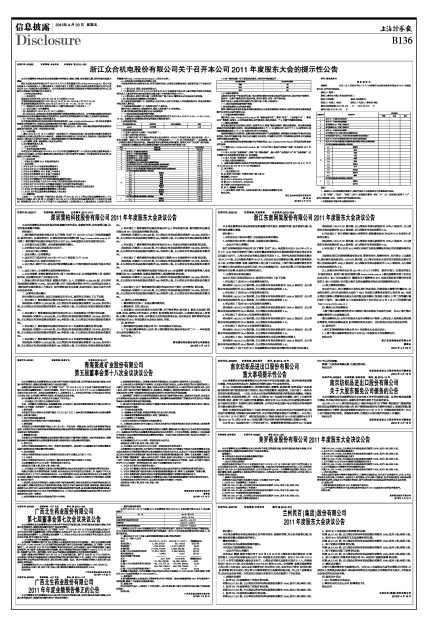 浙江众合机电股份有限公司关于召开本公司2011年度股东大会的提示性公告
