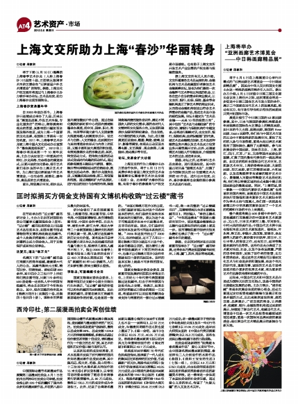 上海文交所作为上海春沙主办方的合作伙伴,将于5月13日与其携手举办首届上海文交所艺术金融高峰论坛暨春季艺术沙龙交易(拍卖)会,此举将扩大春沙的功能,有助于春沙的参展商与产权交易市场接轨,也有助于上海文交所开发艺术产业急需的产权交易与投融资服务。