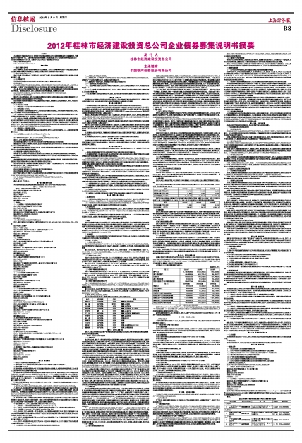 募集说明书摘要:指发行人根据有关法律、法规为本期债券发行而制作的《2012年桂林市经济建设投资总公司企业债券募集说明书摘要》。