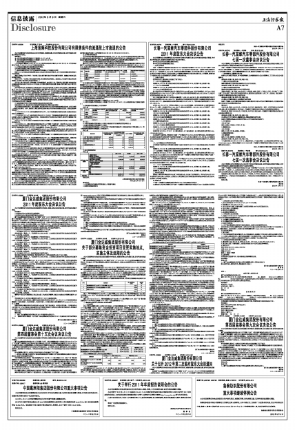 长春一汽富维汽车零部件股份有限公司2011年度股东大会决议公告