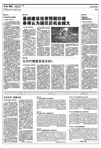 但值得关注的是,随着部分基建项目投资的回暖,行业或逐步改善。有券商认为,继3月发改委集中审批通过包括南京、大连、合肥、武汉、重庆等城市的地铁项目和四川稻城、贵州凯里、湖南衡阳、海南海口机场二期等机场项目后,近期黑龙江抚远、新疆石河子、甘肃庆阳、重庆江北等机场建设项目也审批通过。密集审批基建项目预示基建投资回暖,未来以基建为主的政府投资将回暖,房地产投资中办公楼和商业用房投资增速快于住宅,但住宅投资比重较高,房地产投资未来继续下降。今年水泥行业将呈现先低后高特征,越往后投资机会越大。湘财证券则认为,二季度在基建等重点工程陆续恢复的情况下,需求的回暖较之前将更为明显。但是,在没有出台具体政策刺激之前,需求的回暖将较为平和,超预期的可能性不大。