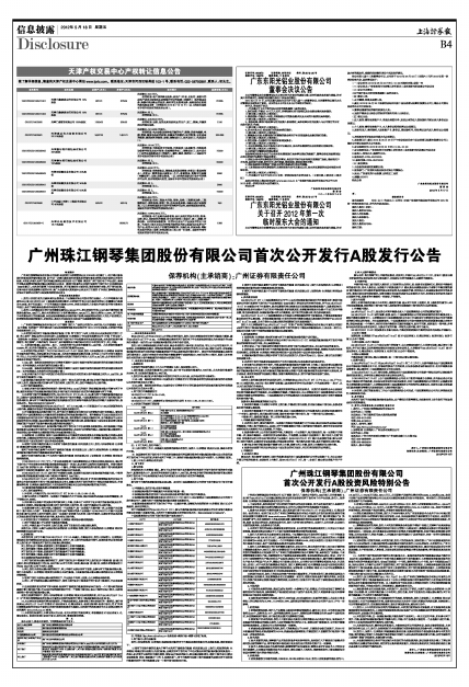 广州珠江钢琴集团股份有限公司首次公开发行A股发行公告