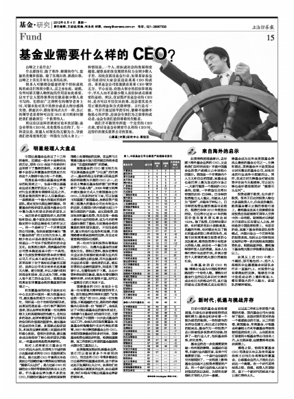 我们并不能凭空捏造一个完美的CEO出来,要讨论基金业需要什么样的CEO时,还得回到现实世界去寻找答案。