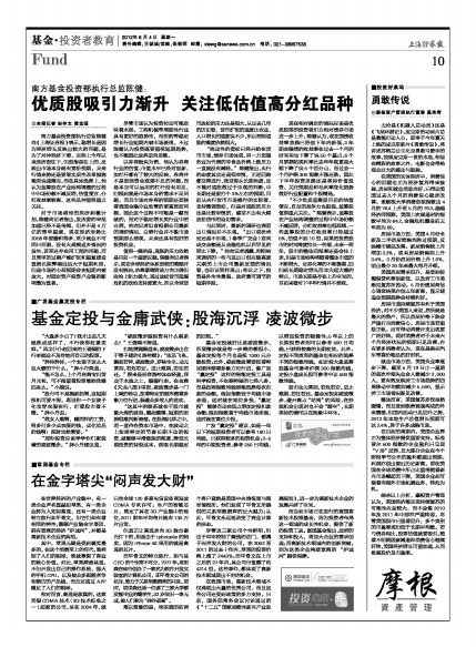 南方基金投资部执行总监陈健:优质股吸引力渐升 关注低估值高分红品种