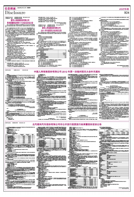 中国人寿保险股份有限公司2012年第一次临时股东大会补充通知