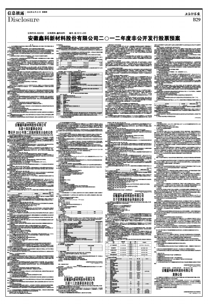 安徽鑫科新材料股份有限公司二○一二年度非公开发行股票预案