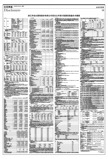 浙江乔治白服饰股份有限公司首次公开发行股票招股意向书摘要