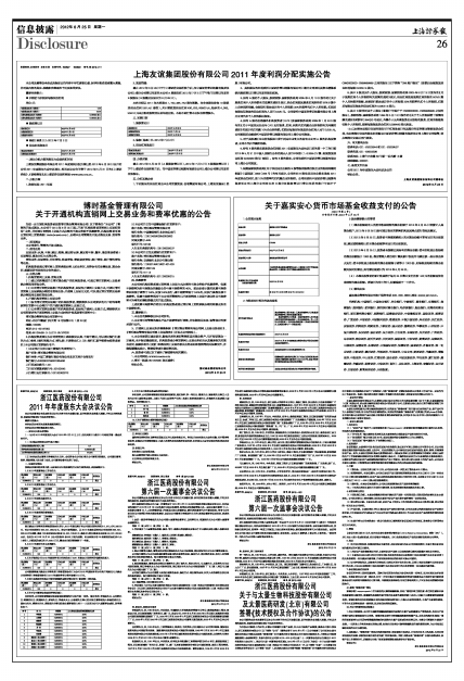 上海友谊集团股份有限公司2011年度利润分配实施公告