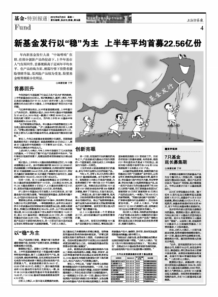 新基金发行以“稳”为主 上半年平均首募22.56亿份