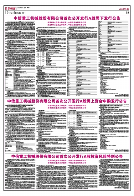 9、本公告仅适用于本次网上发行,关于战略配售和网下发行的具体规定,敬请参见2012年6月26日(T-1日)刊登在《中国证券报》、《上海证券报》、《证券时报》和《证券日报》上的《中信重工机械股份有限公司首次公开发行A股网下发行公告》。