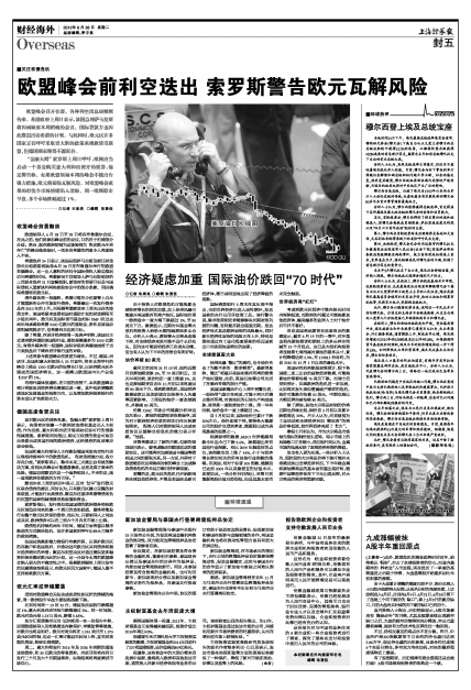 欧盟峰会前利空迭出 索罗斯警告欧元瓦解风险