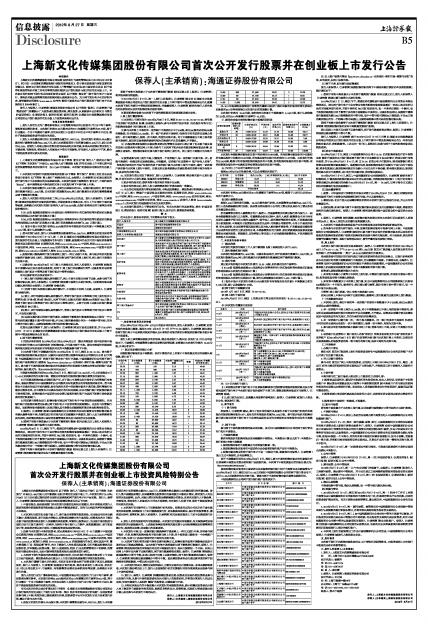 上海新文化传媒集团股份有限公司首次公开发行股票并在创业板上市发行公告