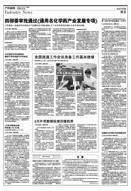四部委审批通过《通用名化学药产业发展专项》