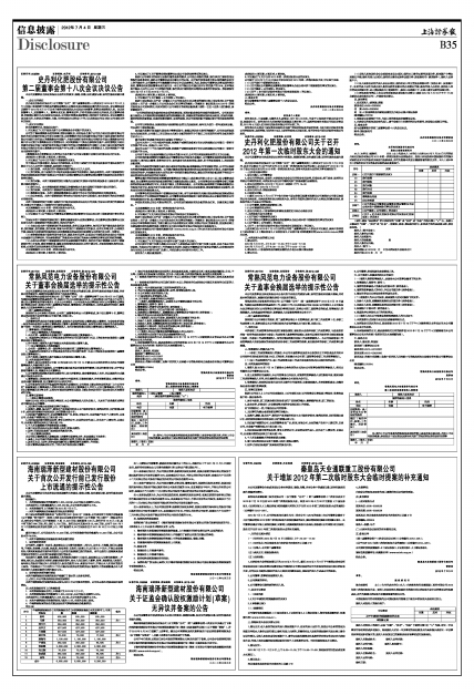 3、会议召开的时间:2012年7月20日(星期五)下午14:00