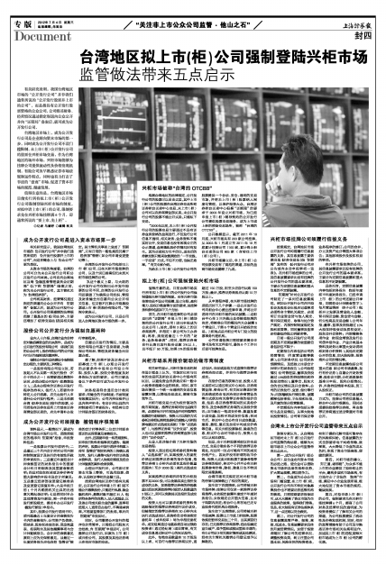 台湾地区拟上市(柜)公司强制登陆兴柜市场监管做法带来五点启示