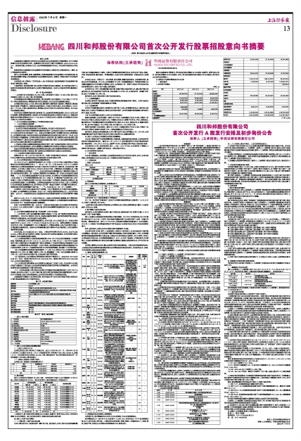 四川和邦股份有限公司首次公开发行股票招股意向书摘要