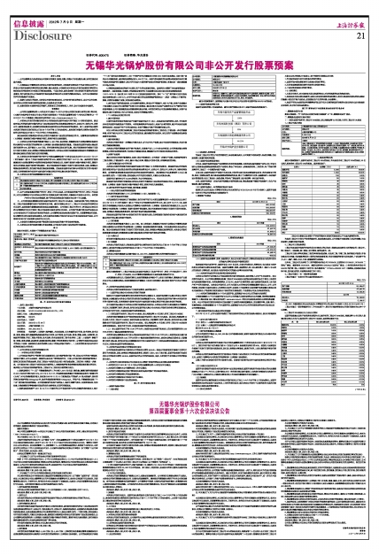 无锡华光锅炉股份有限公司非公开发行股票预案
