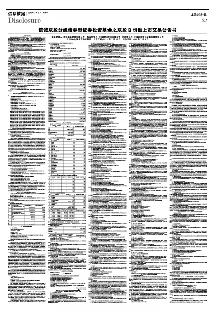 信诚双盈分级债券型证券投资基金之双盈B份额上市交易公告书
