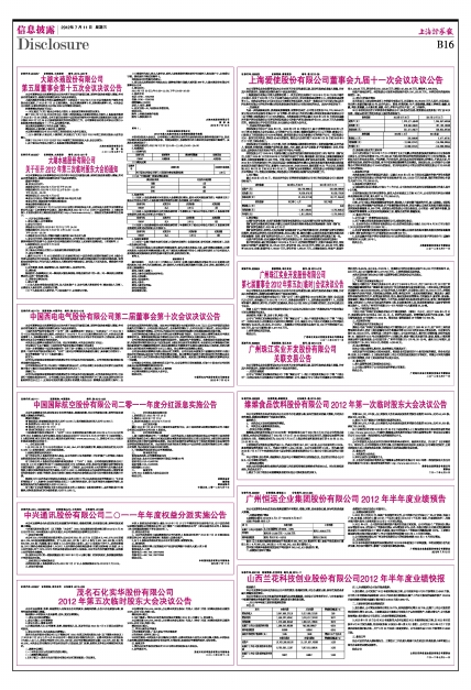 2、报告期内,公司实施了2011年度利润分配方案,公司总股本由57120万股增至114240万股,公司将上年同期基本每股收益1.3101元和本报告期期初归属于上市公司股东的每股净资产13.9314元按照调整后的股本重新计算分别为0.6550元和6.9657元。