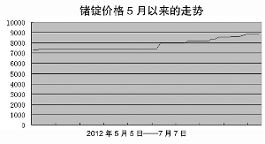 根据百川资讯报价,锗锭价格从5月初的7300元/千克开始缓慢上升,6月中旬开始跳涨,并持续攀升,目前报价在8800元/千克上下,累计涨幅20%。这在一片哀鸣的金属市场中显得尤为出挑。因为目前不管是与宏观经济走势密切相关的基本金属,还是其他具有“战略”、“稀缺”意义的小金属,都同样面临需求疲弱和淡季到来造成的价格下跌。
