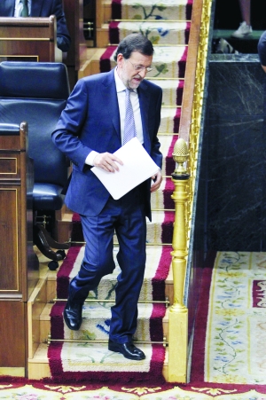 7月11日,西班牙首相马里亚诺·拉霍伊在西班牙议会致辞,宣布紧缩措施。这些措施包括上调增值税,削减开支和暂停公务员圣诞奖金。拉霍伊称这些措施将在未来2年半内从西班牙的预算里削减650亿欧元。